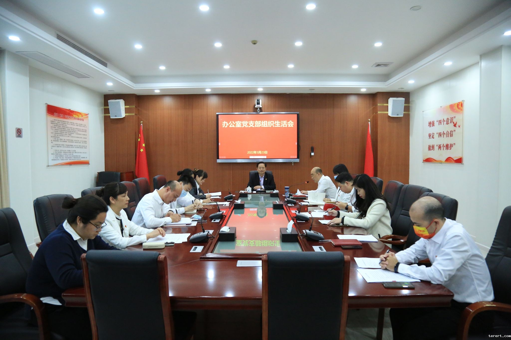 3月23日下午,办公室党支部在科学楼三楼会议室召开组织生活会,学校党委书记林来平以普通党员的身份全程参加了组织生活会,与大家一起谈心交流、分享学习心得。办公室党支部全体党员、入党积极分子参会。会议由办公室党支部书记麦永豪同志主持。