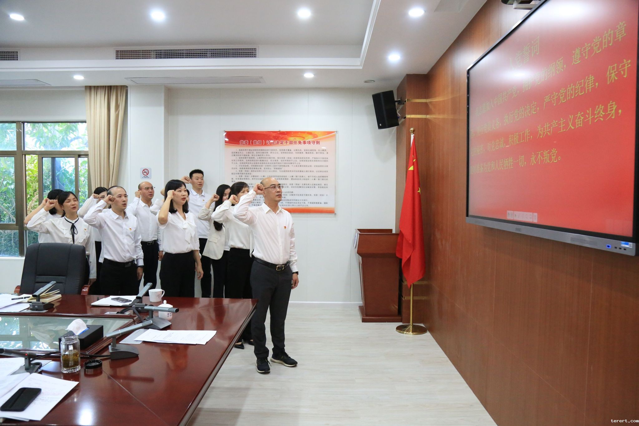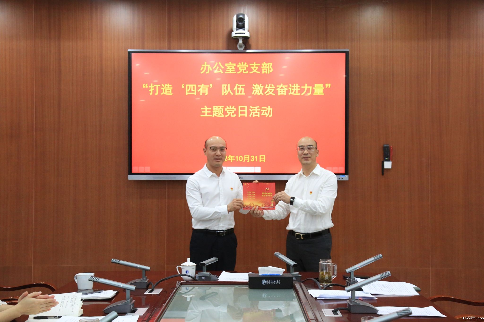 全体党员一起原文诵读《中国共产党章程》第六章“党的干部”中关于党的干部责任义务及行为准则要求的内容和《党政领导干部选拔任用工作条例》《推进领导干部能上能下规定》有关内容。通报了支部党员党费缴纳情况,并开展民主议事“摆问题”、听取意见“凝共识”、共同倡议“话担当”。办公室党支部全体党员为10月入党的党员过政治生日。全体党员重温入党誓词,进一步坚定理想信念。